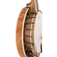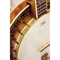 Pay tribute to the heritage of Barnes & Mullins banjos with the Barnes & Mullins BJ500M Troubadour 5 String Banjo. Named after the monthly magazine published by Barnes & Mullins in 1895, the BJ500M ‘Troubadour’ 5 string banjo combines outstanding quality with a unique and striking appearance. This 5 string banjo features an ‘antique’ appearance with a patterned tone ring and flange. A low action and quick neck make this banjo a joy to play. It features a stunning closed back burl maple resonator, which delivers an authentic, punchy bluegrass tone that sounds as great as this banjo looks. The resonator is matched by a hard maple neck and maple laminate rim. Geared machine heads ensure improved tuning stability. The BJ500M also features a rolled brass tone ring to improve the volume and projection of the instrument. Whether you’re a beginner or an expert, you should definitely check out the BJ500M.