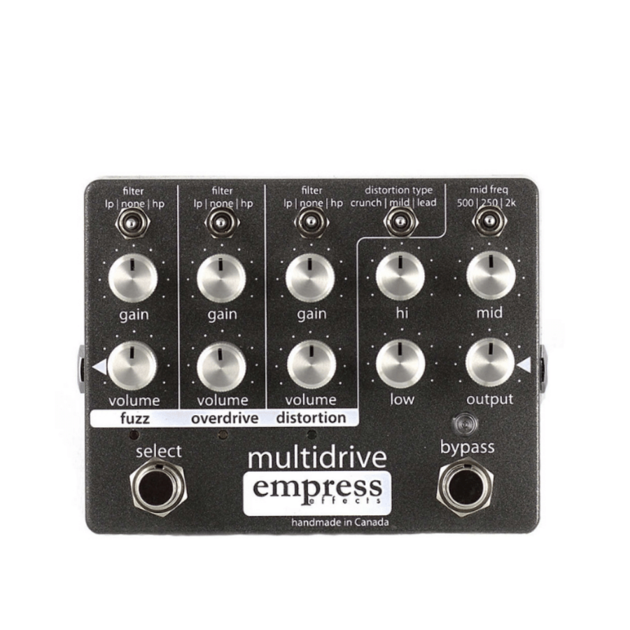 The multidrive allows you to blend Overdrive, Distortion and Fuzz together, creating a full and rich array of tones that would not be available otherwise. Let the sustain of fuzz, the bite of distortion and the clarity and note definition of overdrive all work together! It’s like having an overdrive pedal, a fuzz pedal, and a distortion pedal, all in one box.