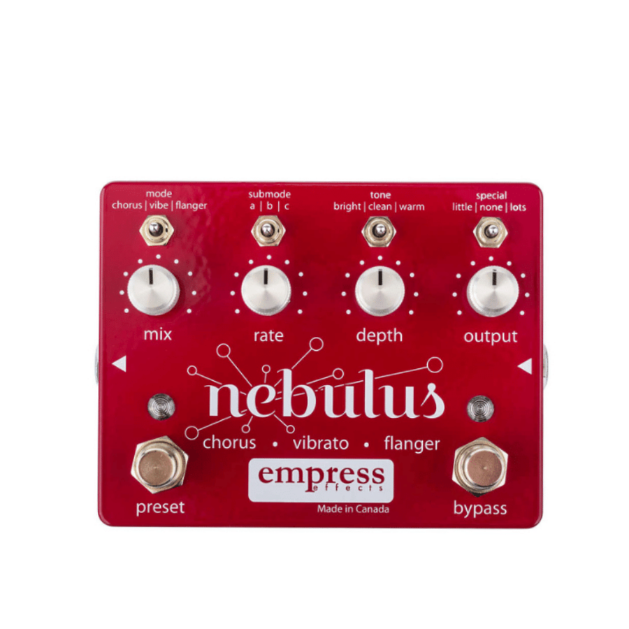 The Nebulus brings guitarists high quality chorus, flanger and vibrato effects in a really compact 4.5 by 3.5 inch pedal. To increase the tone range even further 3 variations on each effect are available for a total of 9 tweak-able modes. All this flexibility is easy to access via a preset system capable of storing up to 8 different presets.