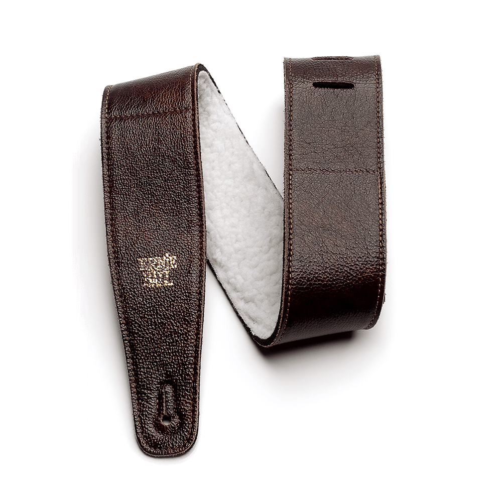 The Ernie Ball Chestnut Italian leather strap features "Fur Sherpa" synthetic fur lining which helps conform to the shoulder area allowing for added comfort. All leather straps are 2.5" wide and imported from Futura Leathers in Vicenza, Italy featuring a deluxe top grain with a fabulously soft feel and their uniform, plain colours offer a stylish, timeless quality. Adjustable lengths from 38" - 61".