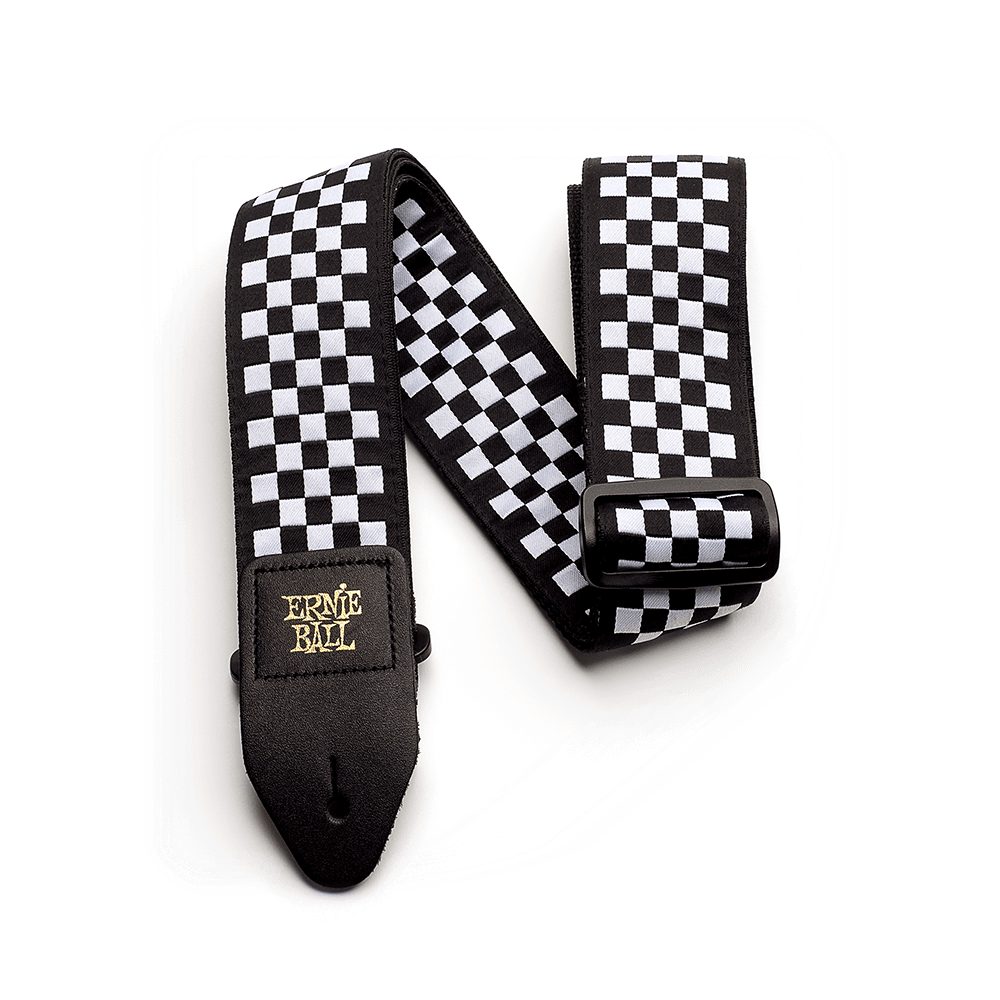 The Ernie Ball Strap is a durable and comfortable 2-inch wide strap with checkered design. Machined stitched to quality brown leather ends (EB logo stamped in gold print) for absolute maximum strength and longevity. Black Delrin adjustable buckle and connector further enhance durability and good looks.
