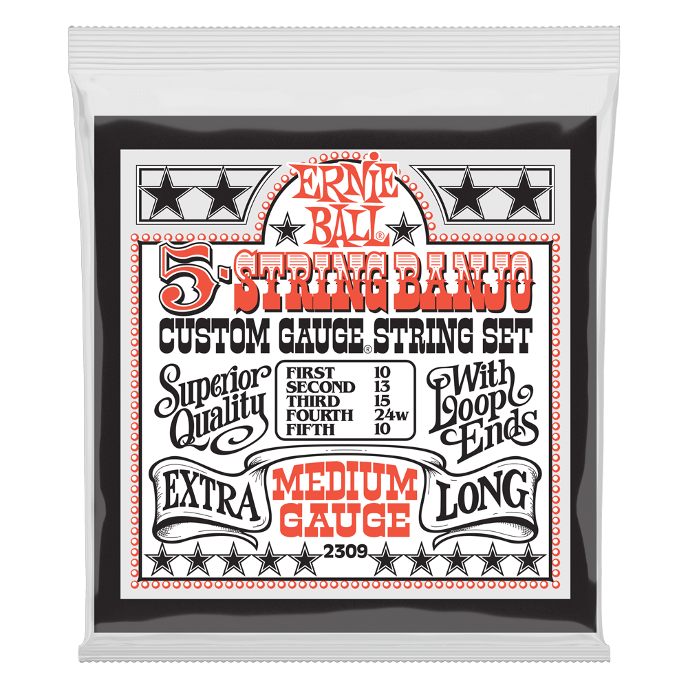 Ernie Ball 5 String Medium Banjo Sets are tin-plated steel-loop end strings that offer bright crisp tone with excellent projection. Ernie Ball strings are precision manufactured to the highest standards and most exacting specs to assure consistency, optimum performance and long life. Gauges: 0.010, 0.013, 0.015, 0.024w, 0.010.