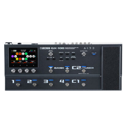 Fusing advanced BOSS tone technologies into a sleek, ultra-modern hardware design, the inspiring GX-100 delivers top-level performance everywhere you play. Explore 23 AIRD amplifiers and over 150 effects derived from the flagship GT-1000, and craft great sounds in seconds with the intuitive color touch display. Up to 15 simultaneous effect blocks provide unlimited tone possibilities, coupled with deep real-time command via onboard footswitches, an expression pedal, and external control support.