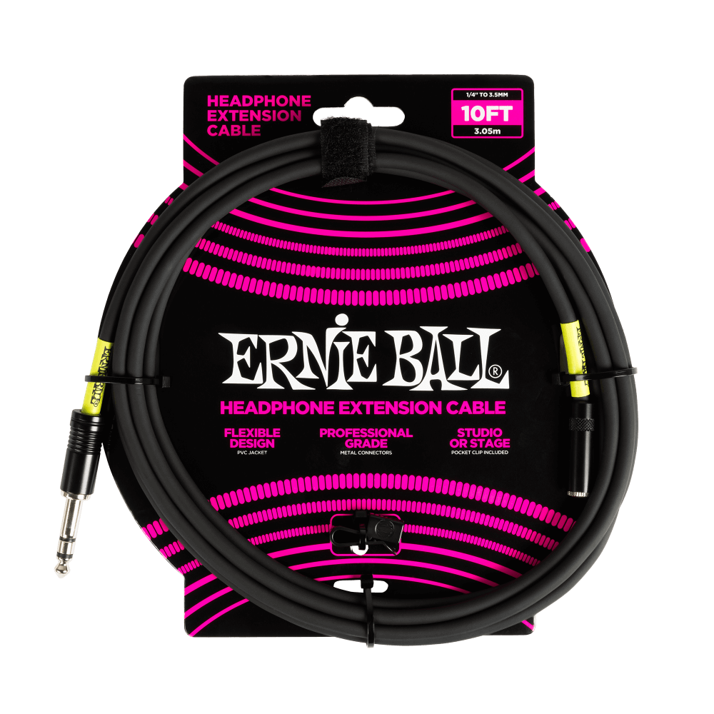 Ernie Ball Headphone Extension Cable 1/4 to 3.5mm 10ft - Black