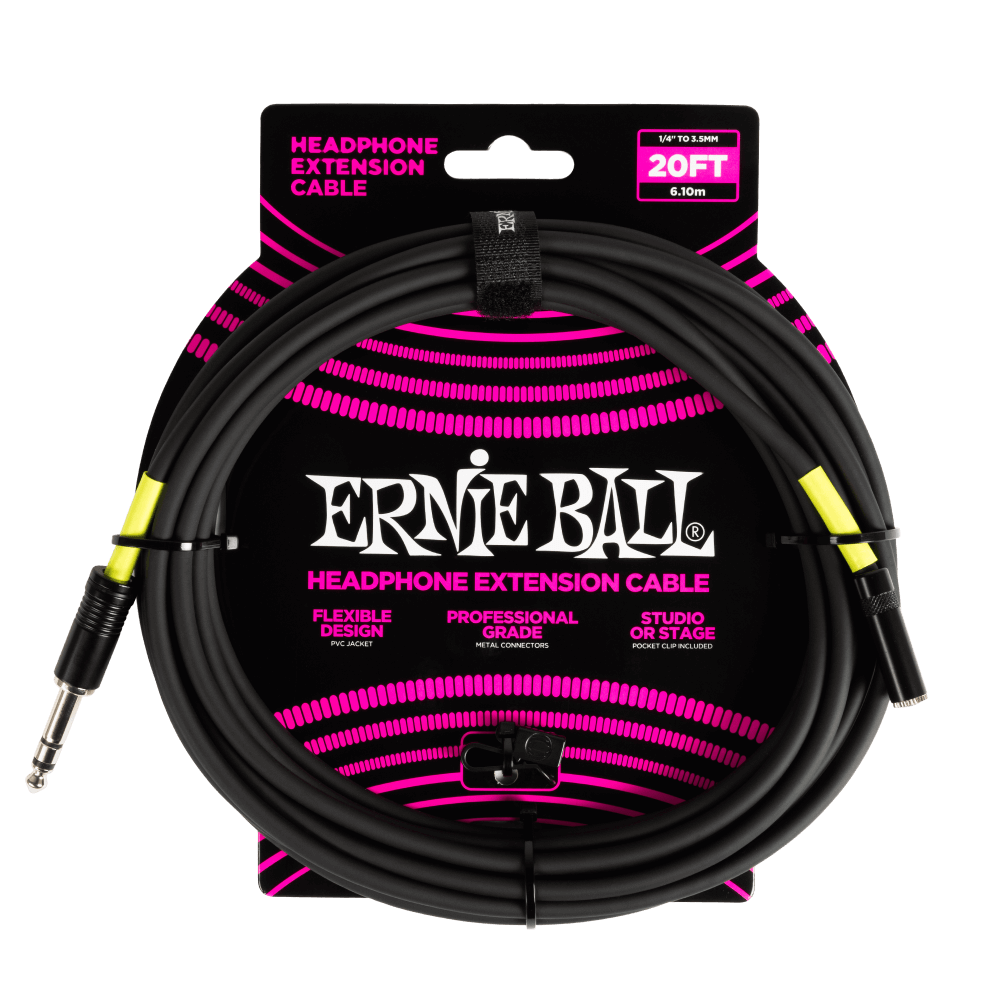 Ernie Ball’s headphone extension cables are a professional grade solution for musicians using headphones or in-ear monitors (IEMs) on stage or at home practicing or recording. Features a roadworthy construction for dependable performance and a convenient belt clip and cable tie. Offered in 10ft and 20ft lengths with 3.5mm and 1/4” plugs for a variety of studio and performance applications. Get connected and stay connected with Ernie Ball’s line of extension cables.