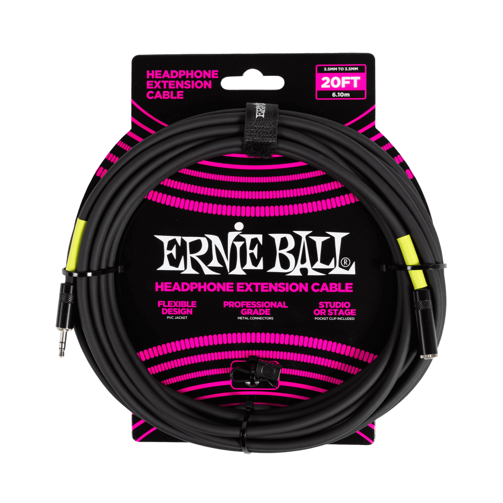 Ernie Ball’s headphone extension cables are a professional grade solution for musicians using headphones or in-ear monitors (IEMs) on stage or at home practicing or recording. Features a roadworthy construction for dependable performance and a convenient belt clip and cable tie. Offered in 10ft and 20ft lengths with 3.5mm and 1/4” plugs for a variety of studio and performance applications. Get connected and stay connected with Ernie Ball’s line of extension cables.