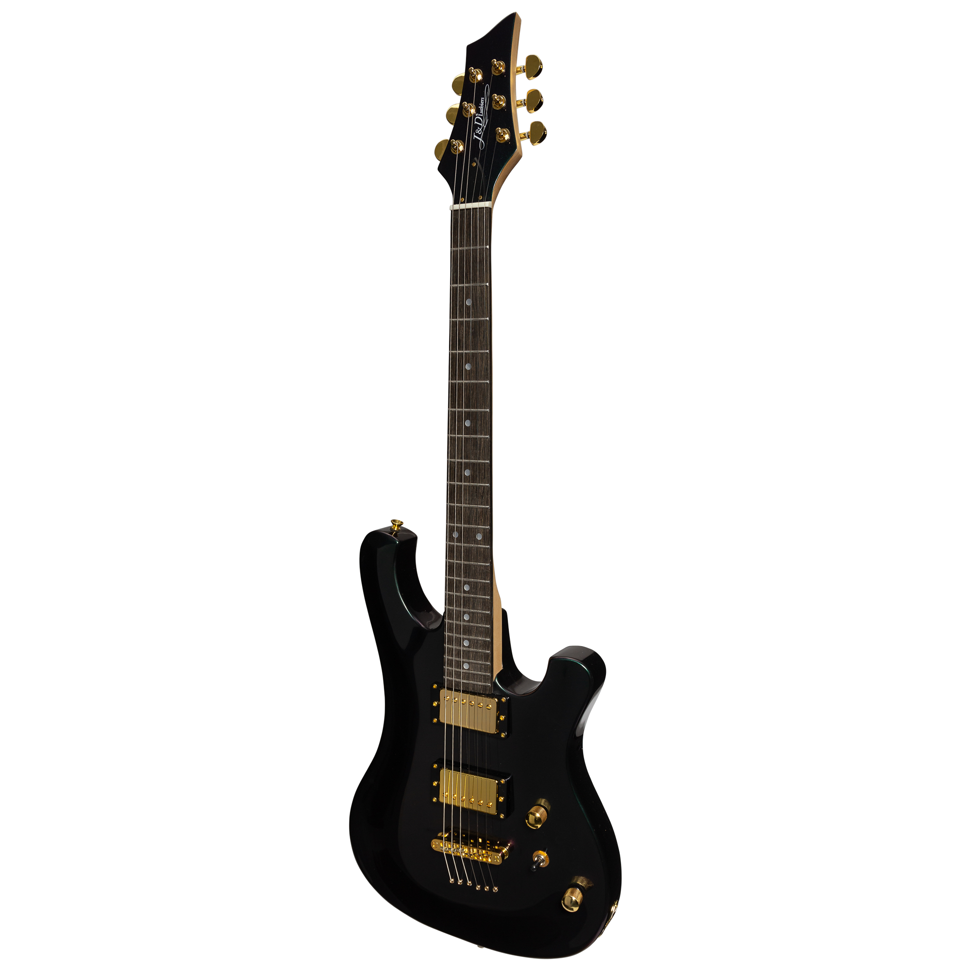 The J&D Luthiers contemporary electric guitar sounds as good as it looks. Thanks to its traditional mahogany body and set neck construction, the J&D contemporary produces tonal warmth and powerful sustain. Featuring vintage style 'Full Range' Humbuckers, tone and volume controls, 3-way toggle switch, "Grover" style tuners, Gold speed knobs and traditional dot inlays, the J&D LP is an affordable rock n roll machine.