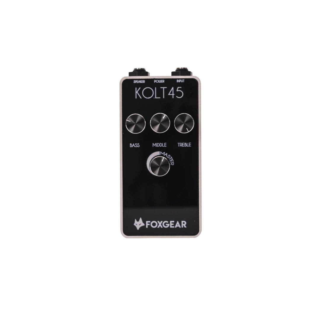 The Kolt45 is a powerful guitar amplifier in a highly portable, stomp box sized platform. The Kolt45 produces a real, 45W RMS into 4 Ohms with a responsive Treble, Middle, Bass tone stack and volume control all in a package that will fit into your jacket pocket. Just connect your guitar into the input, your cabinet to output and be blown away by its clear, fat tone with enough power for practicing, rehearsing and live gigging.