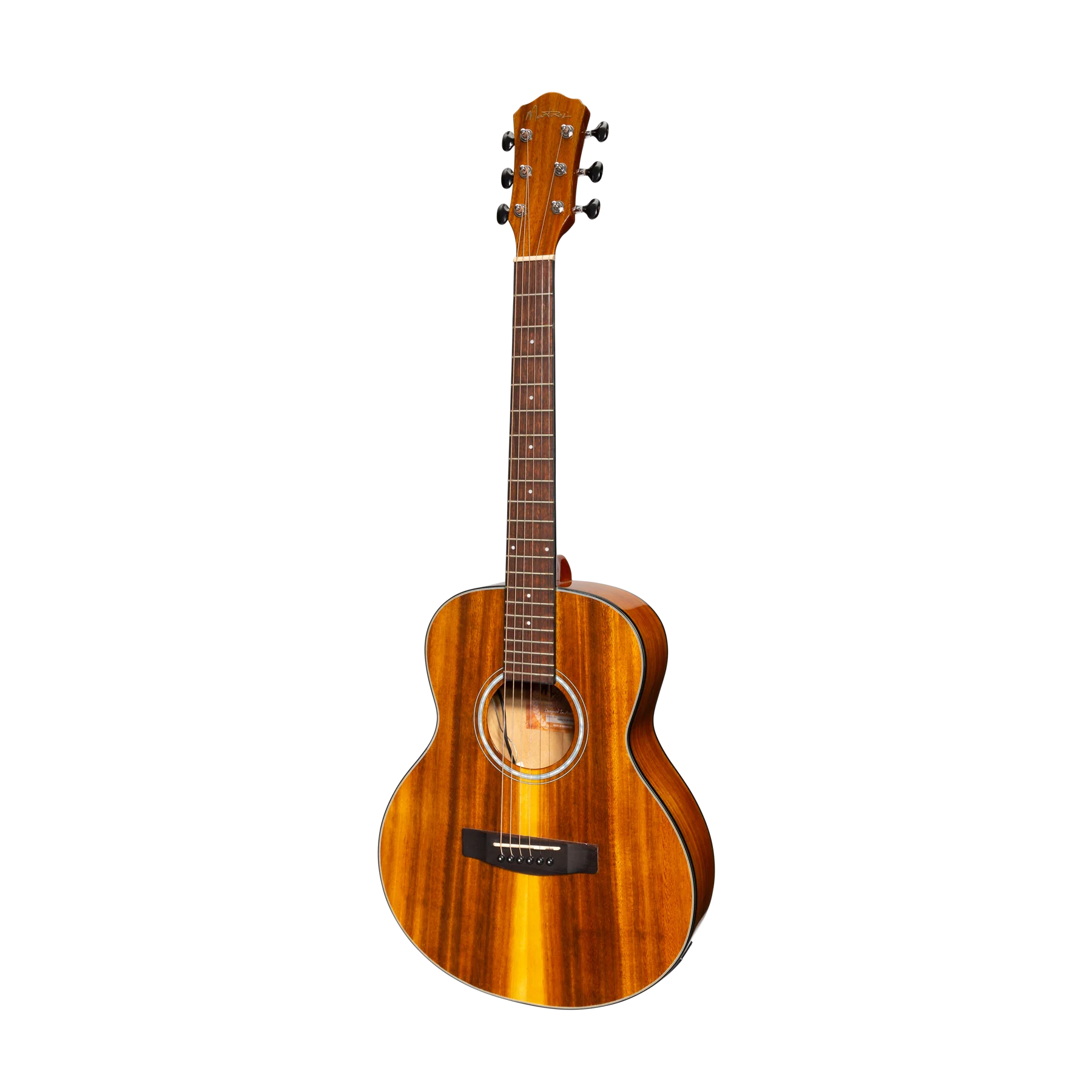 Experience premium sound in a compact design. This stunning Koa acoustic-electric guitar combines the rich, warm tones of genuine Koa wood with the convenience of a short scale neck - perfect for beginners, younger players, or anyone seeking comfortable playability.
