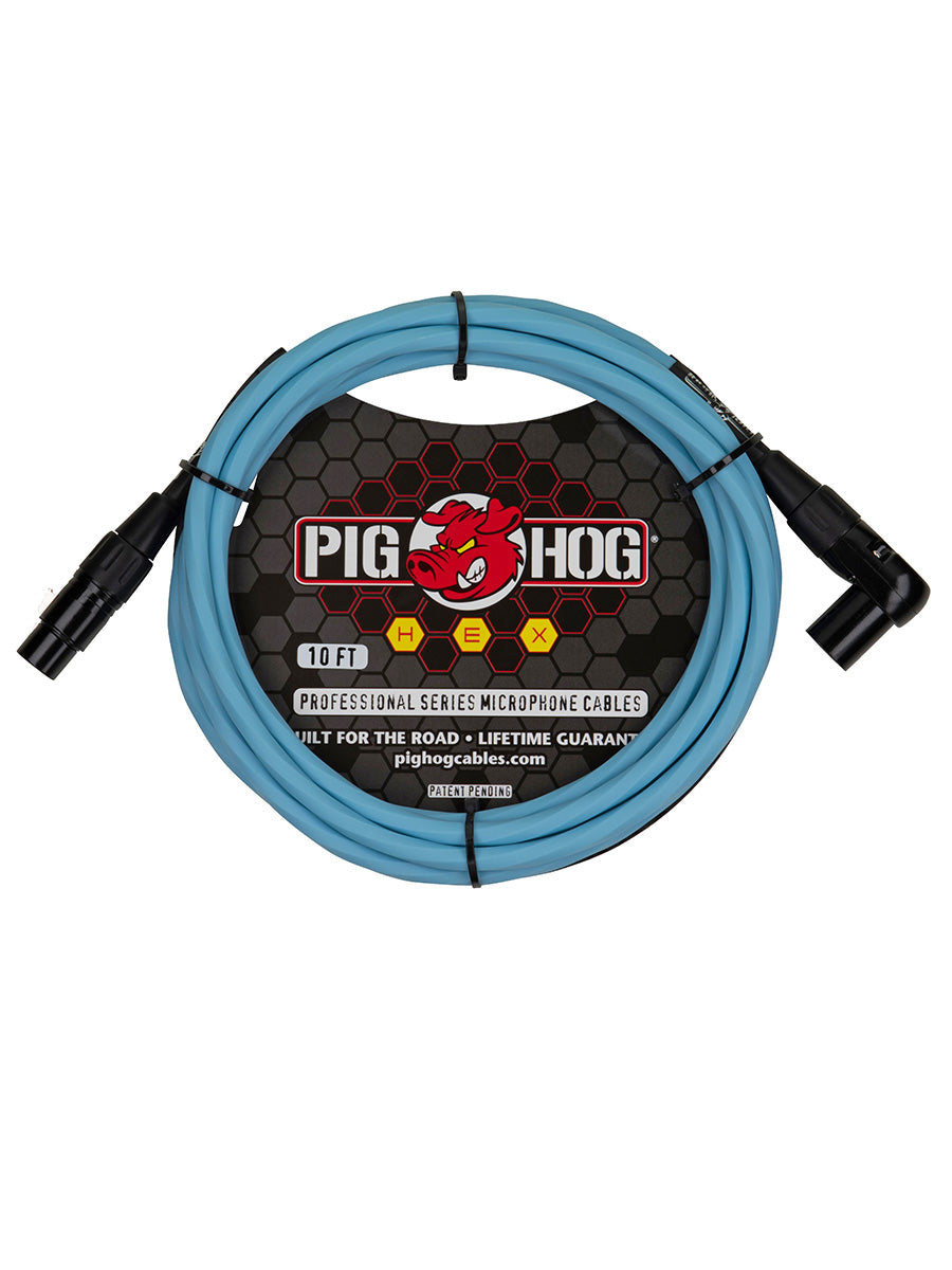Pig Hog Hex Series Mic Cable, 10ft - Daphne Blue - Right Angle