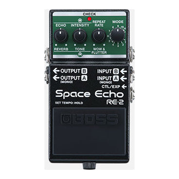 In developing the RE-2 and its big brother, the RE-202, BOSS engineers have fully reproduced all the complex, non-linear behaviors that contribute to the RE-201’s immortal character. We carefully analyzed several vintage RE-201s, including a pristine original unit from the BOSS and Roland factory archive. Everything that influences the sound has been recreated with all-new algorithms, including the tape path, record/playback mechanism, motor variations, preamp coloration, spring reverb character, and more.