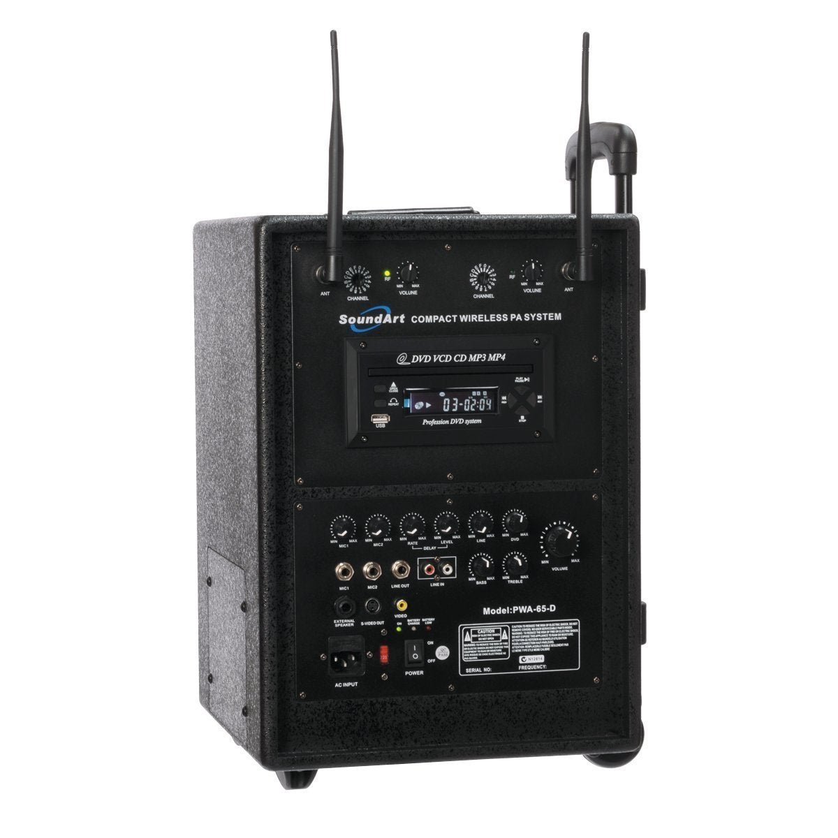 The SoundArt PWA-65-D 65 Watt RMS Wireless Dual-Channel Rechargeable PA System is ideal for marriage celebrants, schools, sporting clubs, churches, karaoke, public speakers and spruikers. In fact, it is suitable for just about anyone that needs high quality, powerful, portable sound. The unit comes with two wireless microphones and a wide range of audio/video features, which means you can also plug in a guitar, keyboard and just about any other musical instrument.