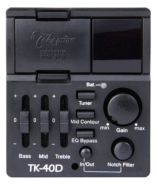 Takamine TK-40D preamp system gives you a built-in tuner, three-band EQ and gain controls, mid contour switch, notch filter and EQ bypass switch for the ultimate in versatility and sound quality.